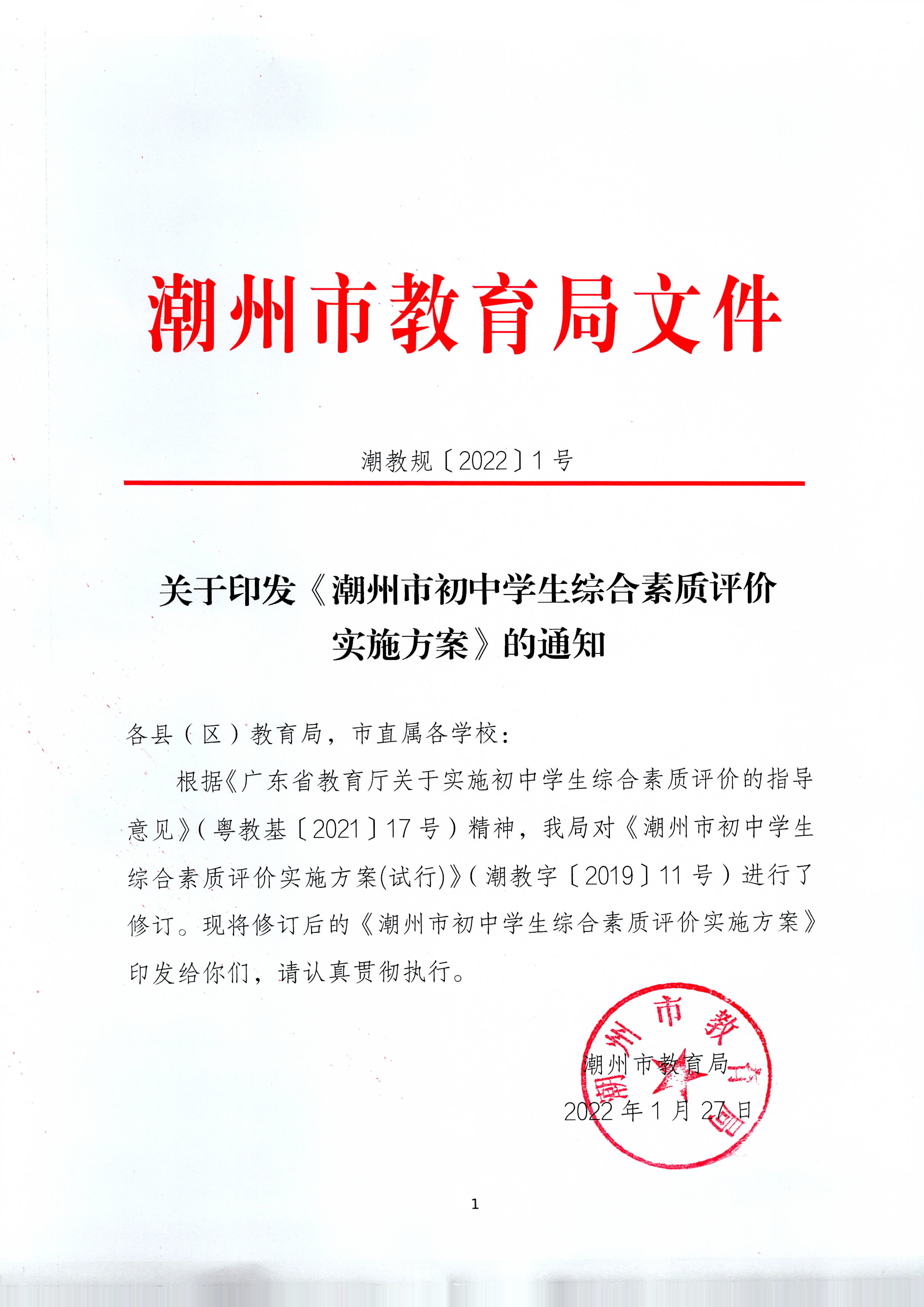 关于印发《潮州市初中学生综合素质评价实施方案》的通知