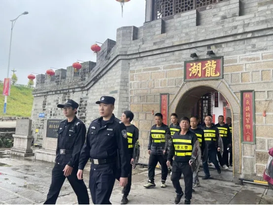 二是组建古寨义警。随着龙湖古寨知名度提高,外来游客增多,龙湖派出所面临的治安形势愈发复杂。为有效缓解治安压力,龙湖派出所于2023年3月从龙湖古寨景区商家铺户中选拨出10名治安防范积极分子,组建成立龙湖古寨义警队,充分激发老百姓参与治安调解的积极性、主动性和创造性。义警队作为“5分钟”快反圈应急处突力量的重要组成部分,协助龙湖派出所开展治安巡逻、矛盾调解、救助和寻失等工作,为龙湖古寨的平安稳定发挥了重要作用。