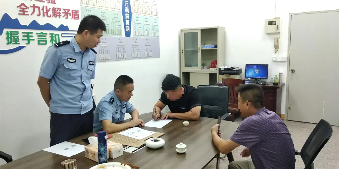 二是打造覆盖全镇的多功能调解室。龙湖派出所联合各村委,在龙湖镇设置17个调解室,组织辖区警力成立调解专班,有针对性开展调解工作,做到“推开一扇门,矛盾全化解”。例如调解林某锋与邻居因纠纷发生冲突一事,通过了解事情全貌和双方诉求后,耐心做好解疑释惑和情绪疏导,以喝茶聊天的方式普法释理,在“讲法”“讲理”“讲情”之间把握尺度、掌握分寸,最终双方达成和解。