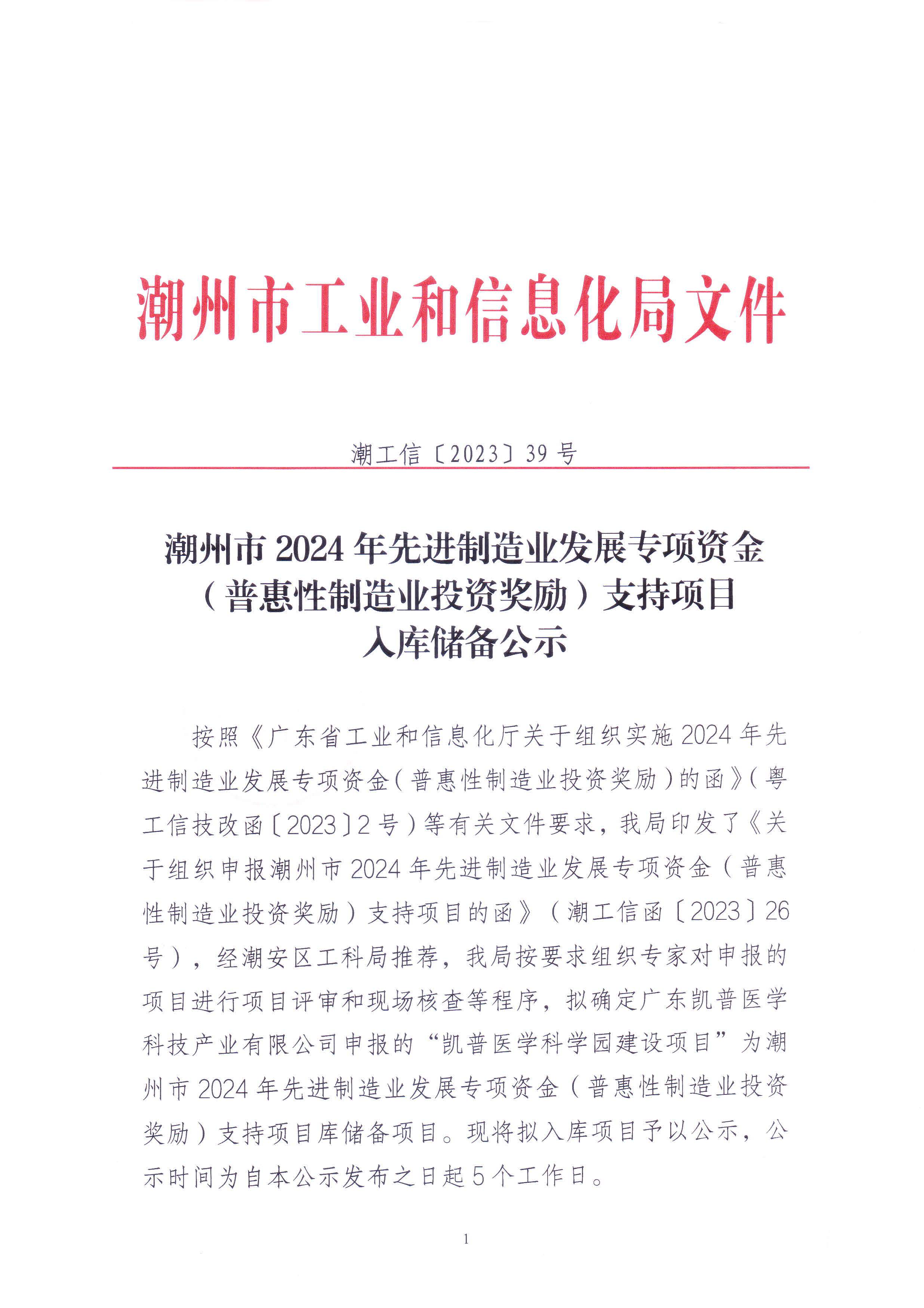 潮州市2024年先进制造业发展专项资金(普惠性制造业投资奖励)支持项目入库储备公示