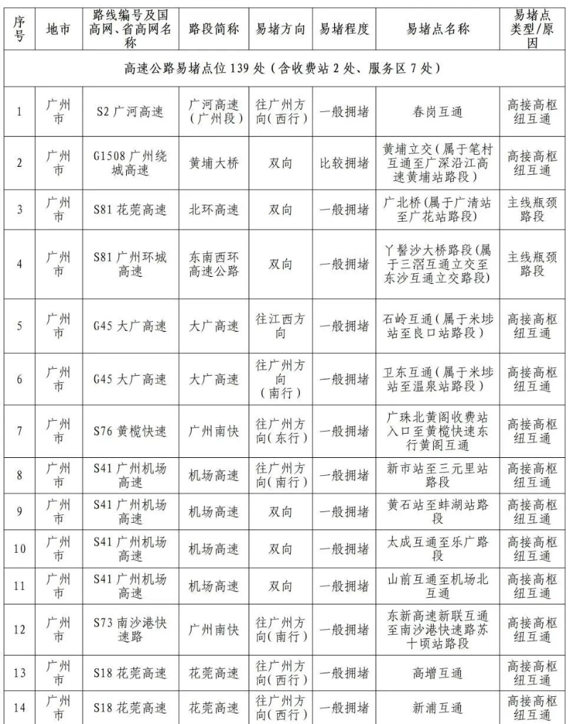 2024年国庆假期高速公路和普通国省道预计繁忙路段一览表
