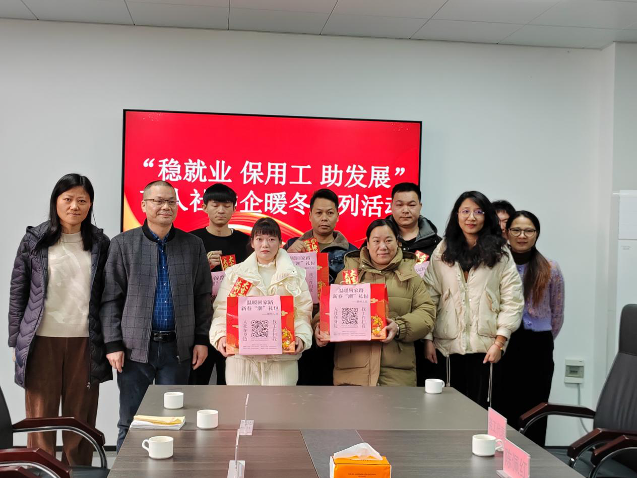 仪式结束后,市人社局、市就业局、区人社局相关同志来到中天城鞋业慰问来自云南省昭通籍员工,为员工代表送上新春礼品和节日问候,期待通过前期广东-云南劳务协作搭建的劳务对接平台,吸引更多昭通老乡来潮发展!鼓励企业通过发放留岗红包、过年礼包、提供文体活动、为困难职工送温暖等方式,加强对农民工的关爱,同时了解企业经营情况及年后用工需求,争取为企业提供更多更全的人社服务。