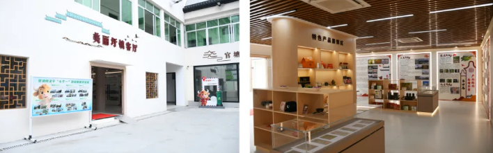 客厅聚能,文化传承活起来。圩镇客厅作为展示官塘形象的重要窗口,系统整合了历史沿革、产业特色、文旅资源等资料,全面展现地方发展风貌,承担起文化传承、产业推广与党建宣传等核心功能。客厅里还增设特色产品展销柜,集中展示苏寨大米、牛肉丸、佛手果膏等本土特产,以及顺大、庆发等龙头企业的代表性产品。新设的咖啡机,集舒适阅读、专题展览与户外会客于一体的多功能空间,更是显著提升了客厅的整体服务功能。