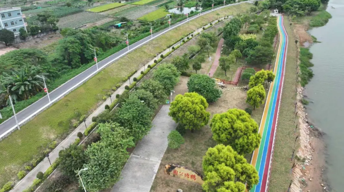 公园漫步,水岸生活更惬意。北溪边上,改造后的鹤塘公园已成为群众休闲健身的热门去处。彩虹步道在绿荫中延伸,新增的健身器材与“官塘牛”主题宣传画相得益彰。亲水步道与周边优化提升的绿化景观融为一体,让这片绿地焕发出新的活力,为周边群众营造更加舒适、便利的休闲健身与娱乐空间。