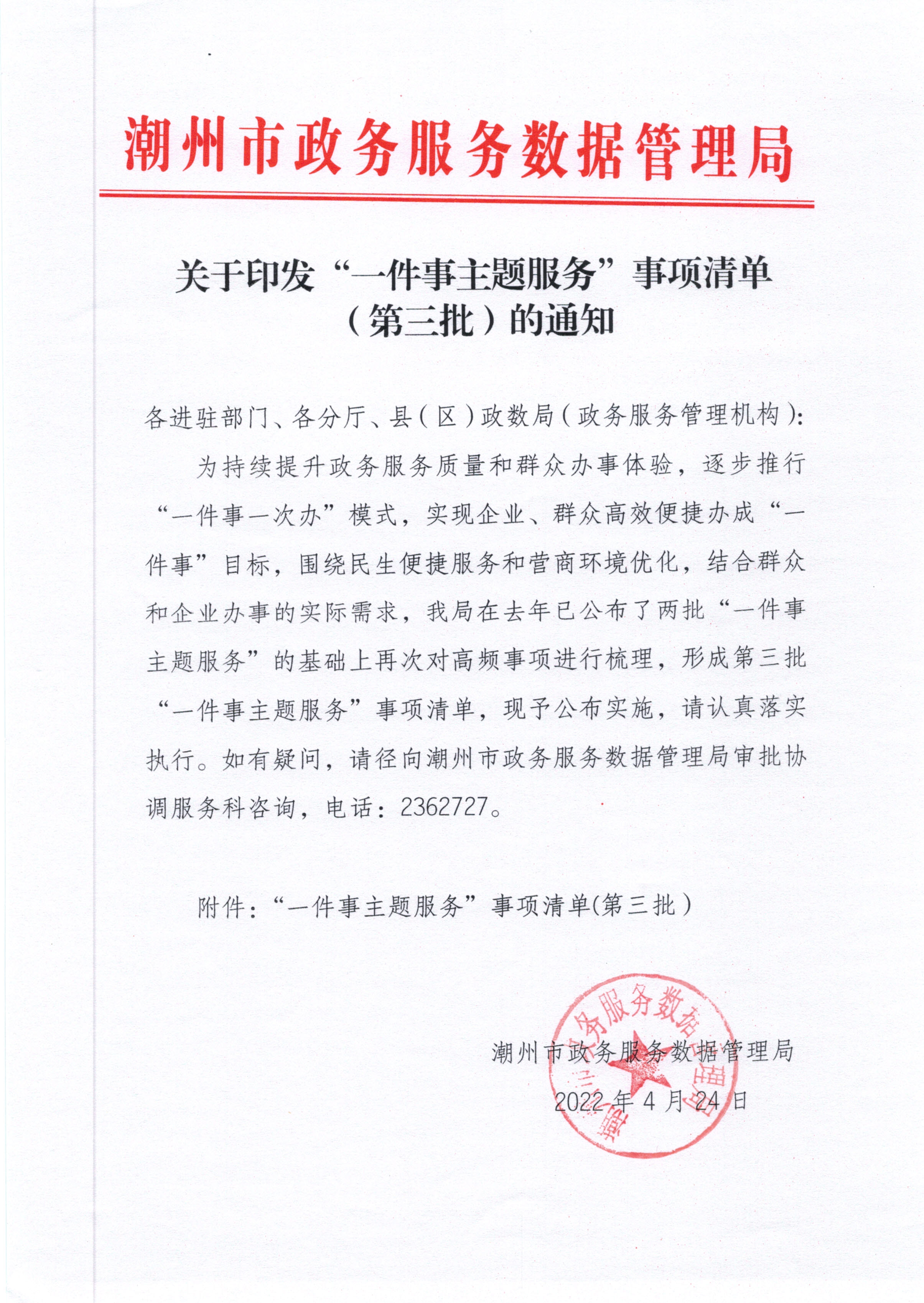 关于印发“一件事主题服务”事项目录清单(第三批)的通知