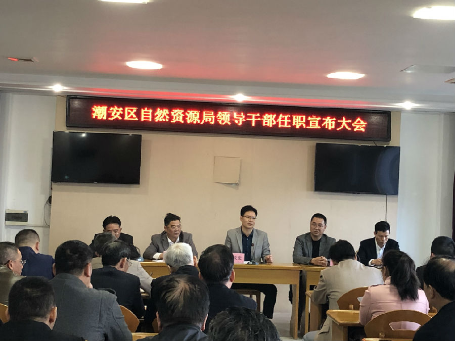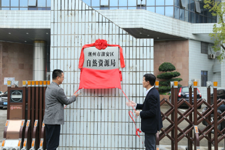 3月6日上午,潮安区自然资源局召开宣布局领导班子成员任命的干部职工大会后,举行了简单而隆重的挂牌仪式;3月8日上午,饶平县自然资源局也顺利举行了挂牌仪式。