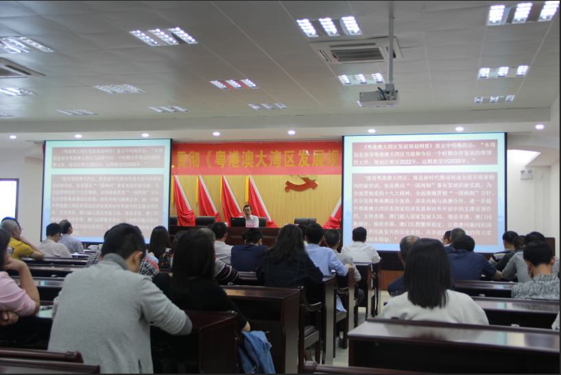 2月28日,中共中央国务院印发了《粤港澳大湾区发展规划纲要》(下称《规划纲要》),《规划纲要》共11章,包括规划背景、总体要求、空间布局、建设国际科技创新中心、加快基础设施互联互通、构建具有国际竞争力的现代产业体系等。为深入学习贯彻习近平总书记关于粤港澳大湾区建设的重要论述,全面学习贯彻《规划纲要》精神,切实把广大党员干部的思想和行动统一到党中央对推进粤港澳大湾区建设的部署要求上来,根据市委宣传部有关通知要求,市自然资源局于4月18日邀请市委宣讲团成员、市委党校教育长陈建宣同志为局机关全体工作人员、下属事业单位班子成员作《规划纲要》专题宣讲。宣讲报告会由市自然资源局党组成员、副局长詹恩惠同志主持。