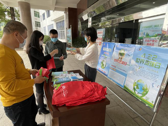三是营造氛围,融入生活共守护。在市自然资源局办公楼门口滚动播放“世界地球日”宣传主题,张贴宣传海报。在登记大厅内外向办事群众和工作人员发放地球日专刊、防灾减灾读本、农村占耕“八不准”折页等宣传材料,现场科普地球日和自然资源相关知识。同时结合防疫需求和日常生活需求,订制了一批“世界地球日”主题宣传口罩和宣传布袋派送给群众,让“珍爱地球 人与自然和谐共生”的理论融入生活。