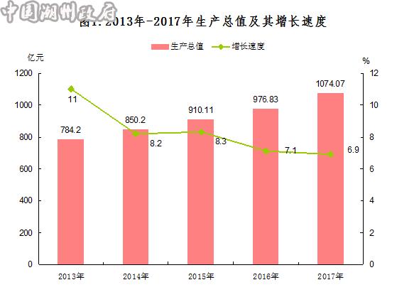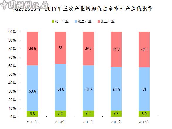 经济总量迈上“千亿”新台阶。初步核算,2017年全市实现生产总值(GDP)1074.07亿元,突破千亿大关,比上年增长6.9%。全市人均生产总值40555元,突破四万元,比上年增长6.7%,按平均汇率折算为6007美元。三次产业增加值分别为74.26亿元、547.8亿元和452.01亿元,同比分别增长5.3%、5.6%和8.9%。服务业(第三产业)对经济增长的贡献率首超第二产业,增速比第二产业高出3.3个百分点,对GDP增长的贡献率达51.9%。分县区看,潮安区GDP增长7.2%,枫溪区GDP增长7.2%,湘桥区GDP增长6.6%,饶平县GDP增长6.8%。