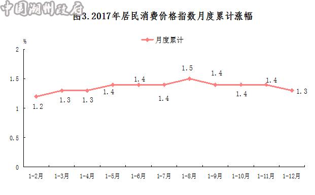 物价水平基本平稳。全年居民消费价格总水平比上年上涨1.3%,涨幅比全省低0.2个百分点。八大类消费品价格六升一平一降,其中,医疗保健类价格涨幅最大,同比上涨6.2%,推动CPI同比上涨0.38个百分点;居住类价格上涨1.8%,生活用品及服务类价格上涨2.7%,交通和通讯类价格上涨1%,教育文化和娱乐类价格上涨2.2%,其他用品和服务类价格上涨1.1%;食品烟酒类价格则与上年同期持平,衣着类价格则下降0.5%。商品零售价格总指数为101.8%,工业生产者出厂价格指数为101.7%。