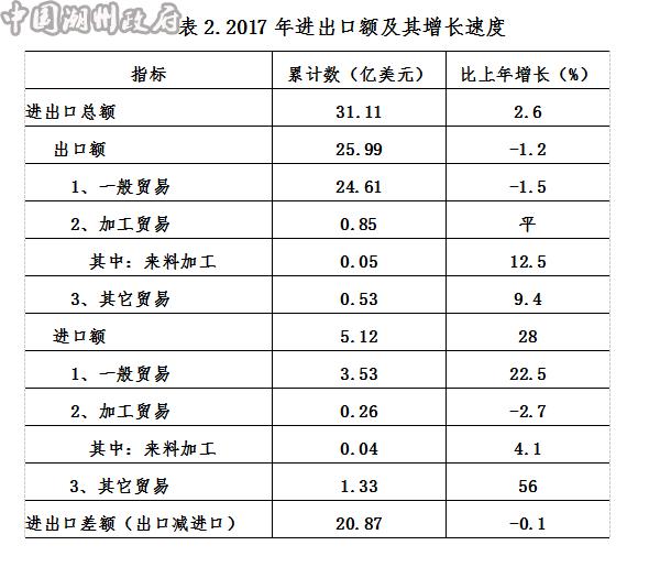 外贸出口逐步回暖。全年进出口总额31.11亿美元,比上年增长2.6%。进口总额5.12亿美元,比上年增长28%;出口总额25.99亿美元,比上年下降1.2%。