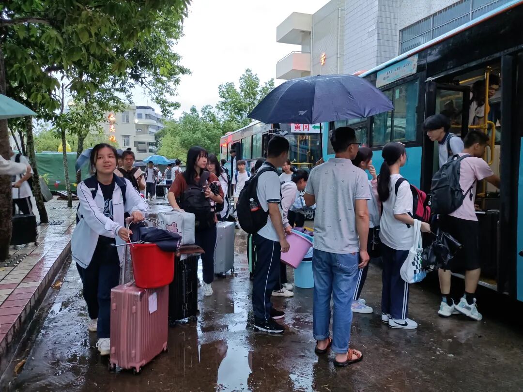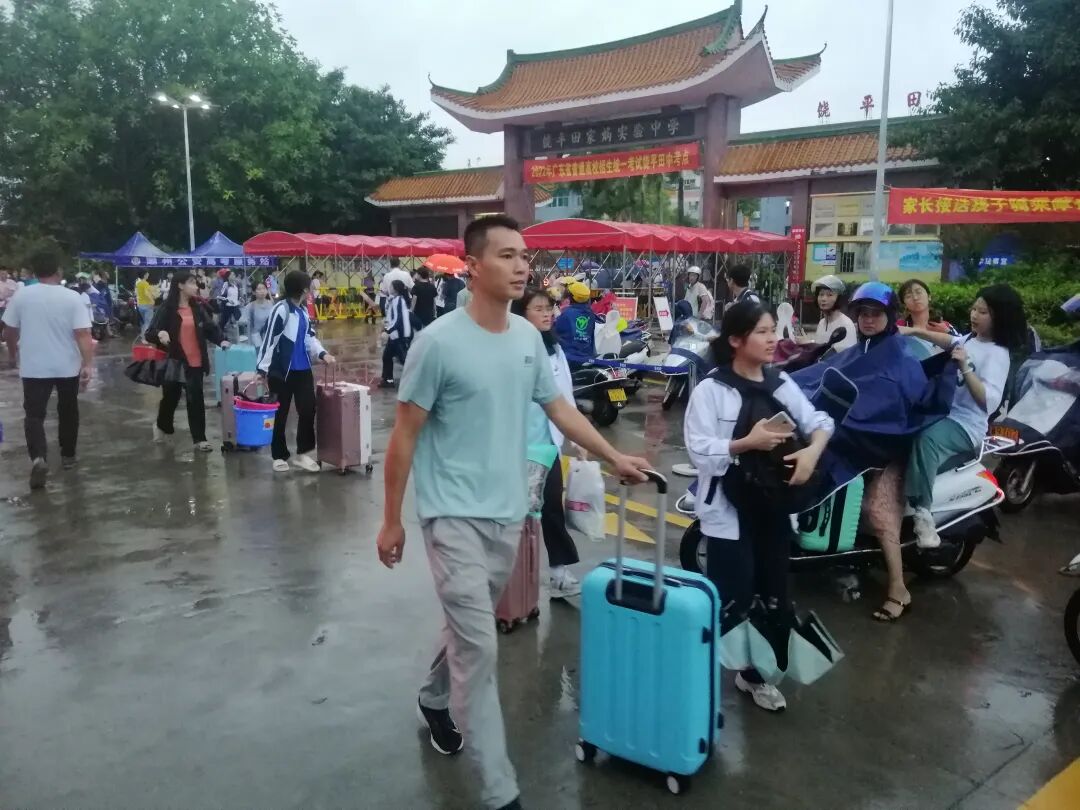 考试结束后,各考点组织教师疏导考生有序退场,在考点外安排接送区域方便家长接考生回家,提醒学生不乘坐无牌无证车辆,一些学校积还积极联系粤运公司安排公共汽车到考点接送考生回家,并安排班主任通过家长微信群、电话跟踪等方式实时跟进所有考生的返程信息直至所有考生平安到家。